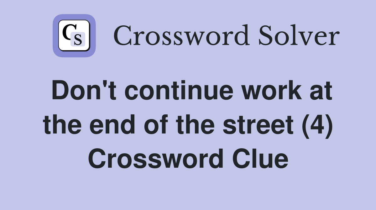 Don #39 t continue work at the end of the street (4) Crossword Clue