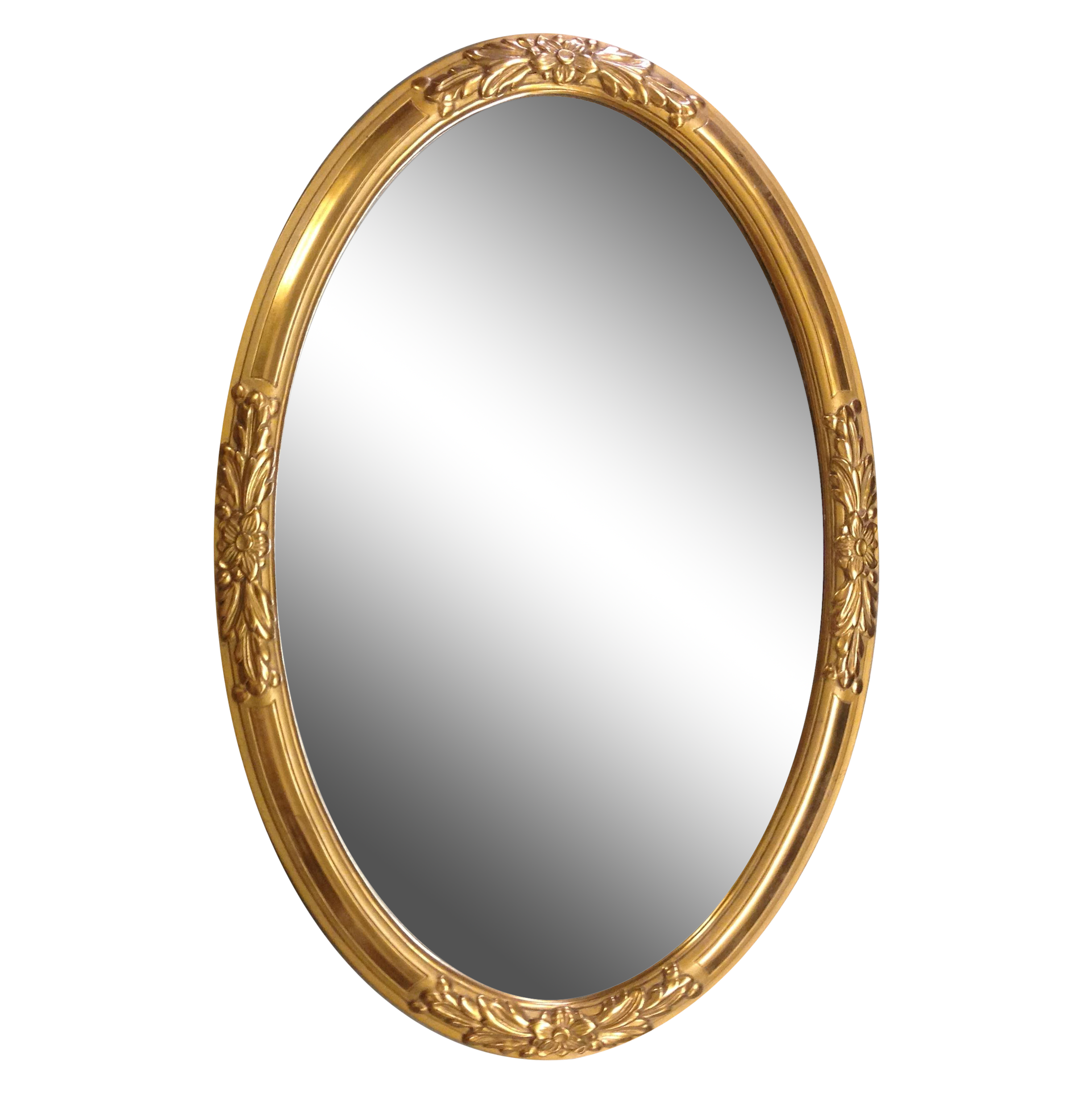 1930s French Gold Wood Framed Oval Mirror Chairish