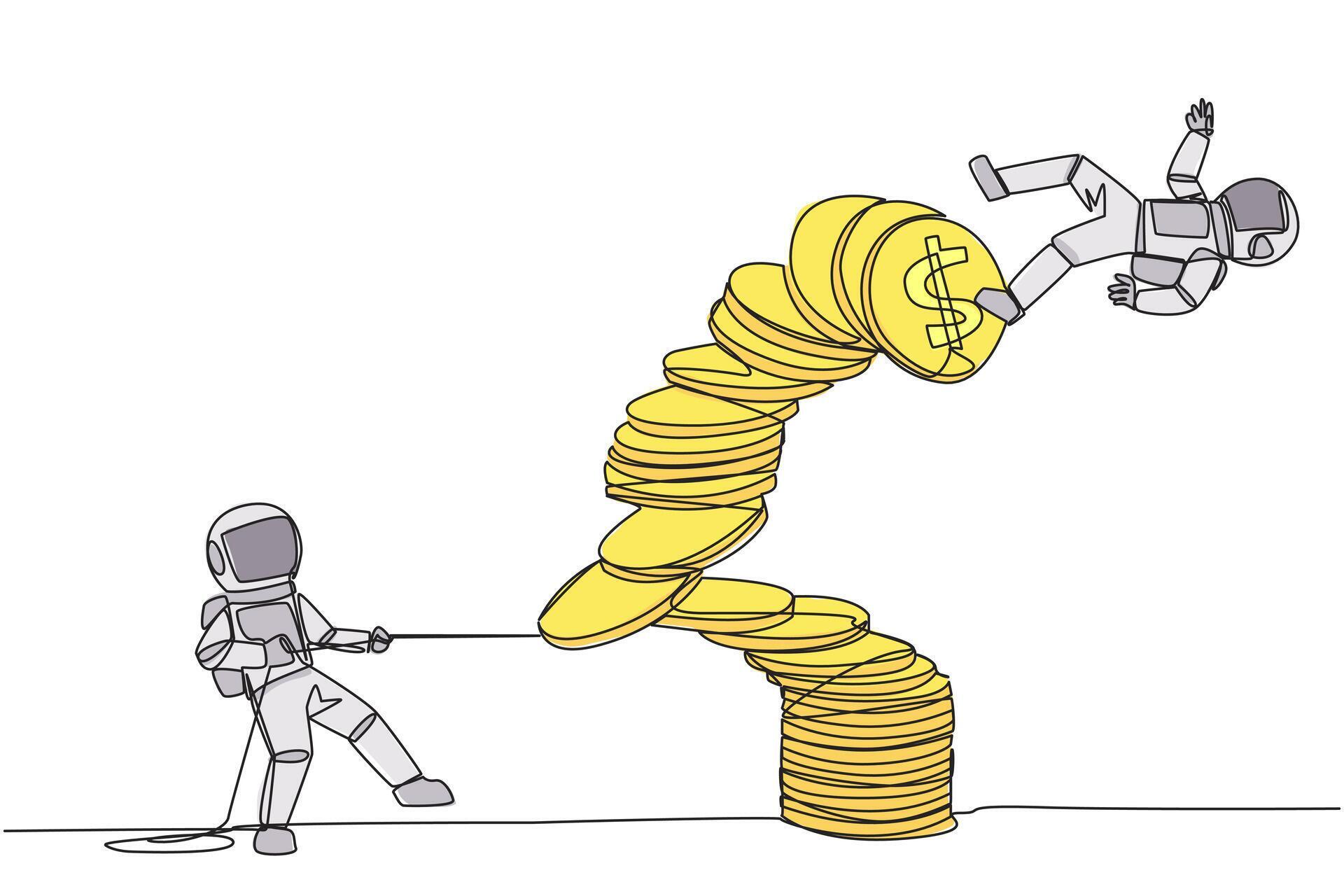 Continuous one line drawing Arabian businesswoman pull one of piles of