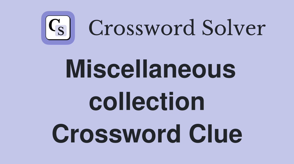 Miscellaneous collection Crossword Clue Answers Crossword Solver