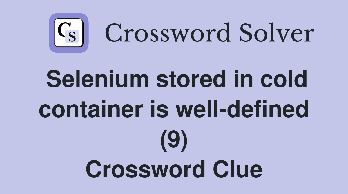 Selenium stored in cold container is well defined (9) Crossword Clue