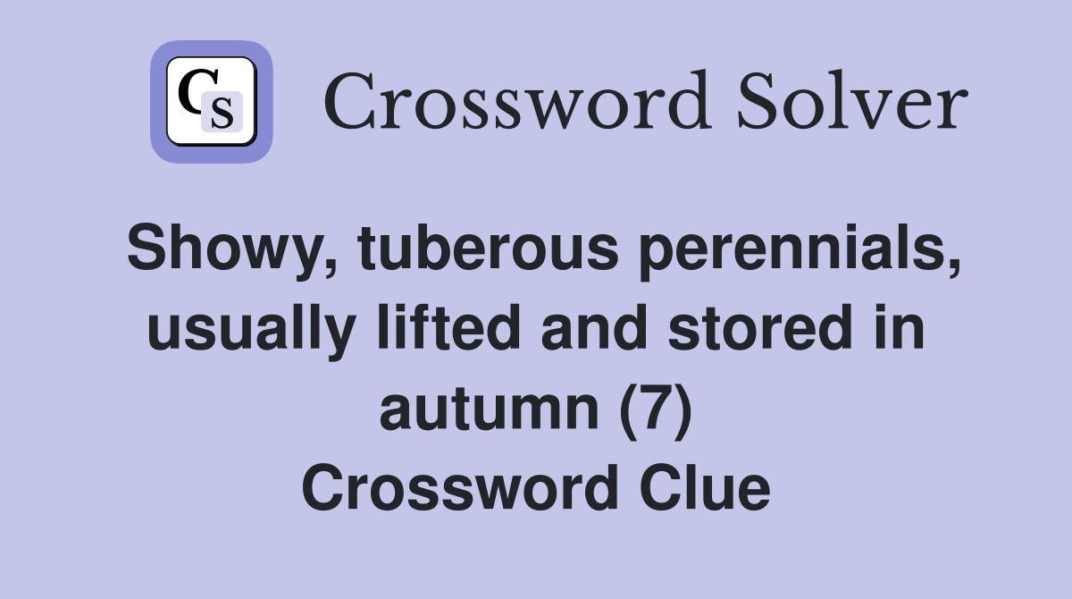 Showy tuberous perennials usually lifted and stored in autumn (7
