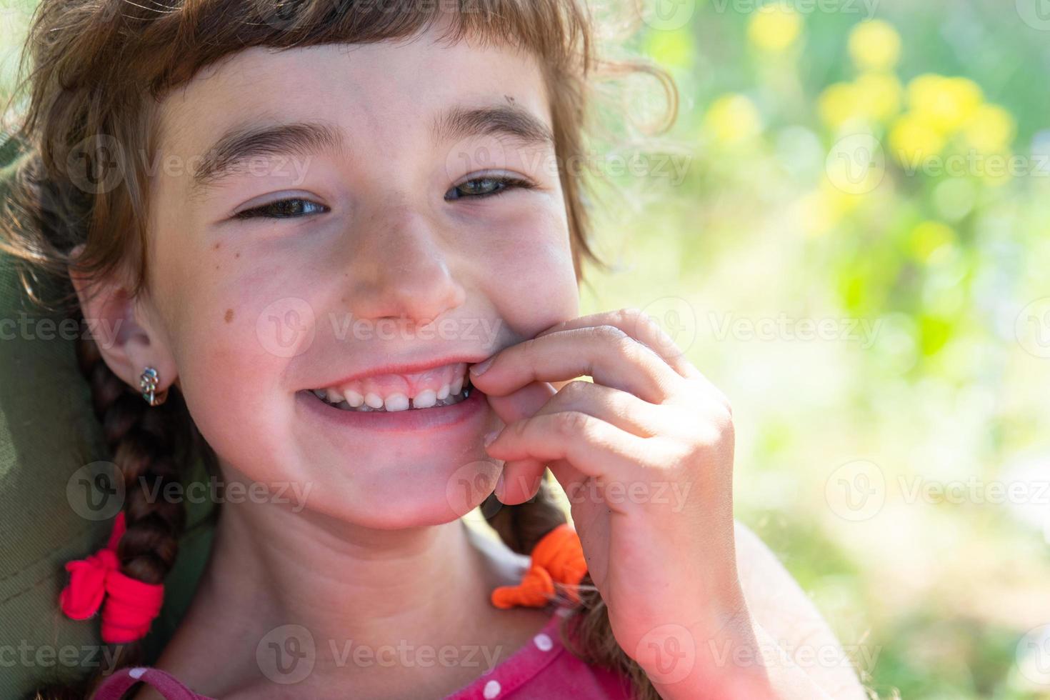 Summer portrait of a happy baby girl with a perky and mischievous smile