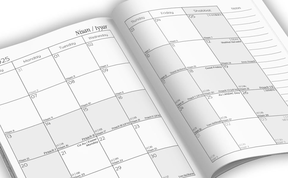 5785 Jewish Monthly Planner in English: October 2024 December 2025