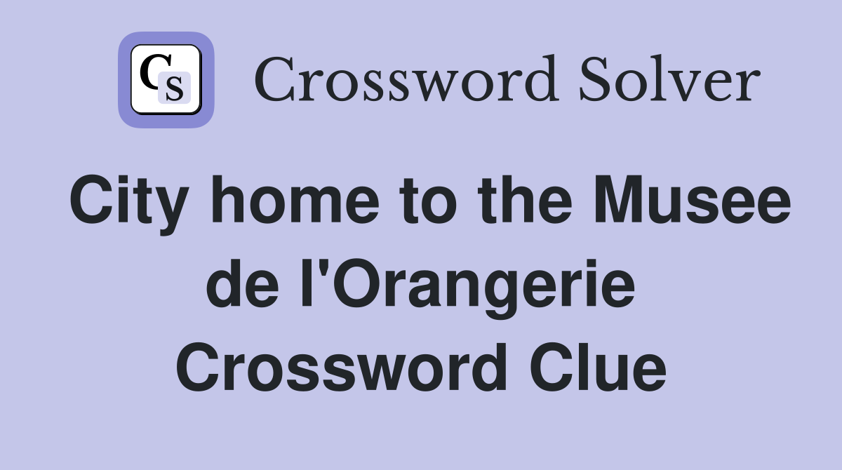 City home to the Musee de l #39 Orangerie Crossword Clue Answers