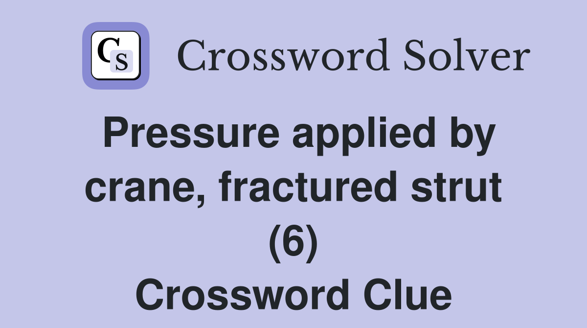 Pressure applied by crane fractured strut (6) Crossword Clue Answers