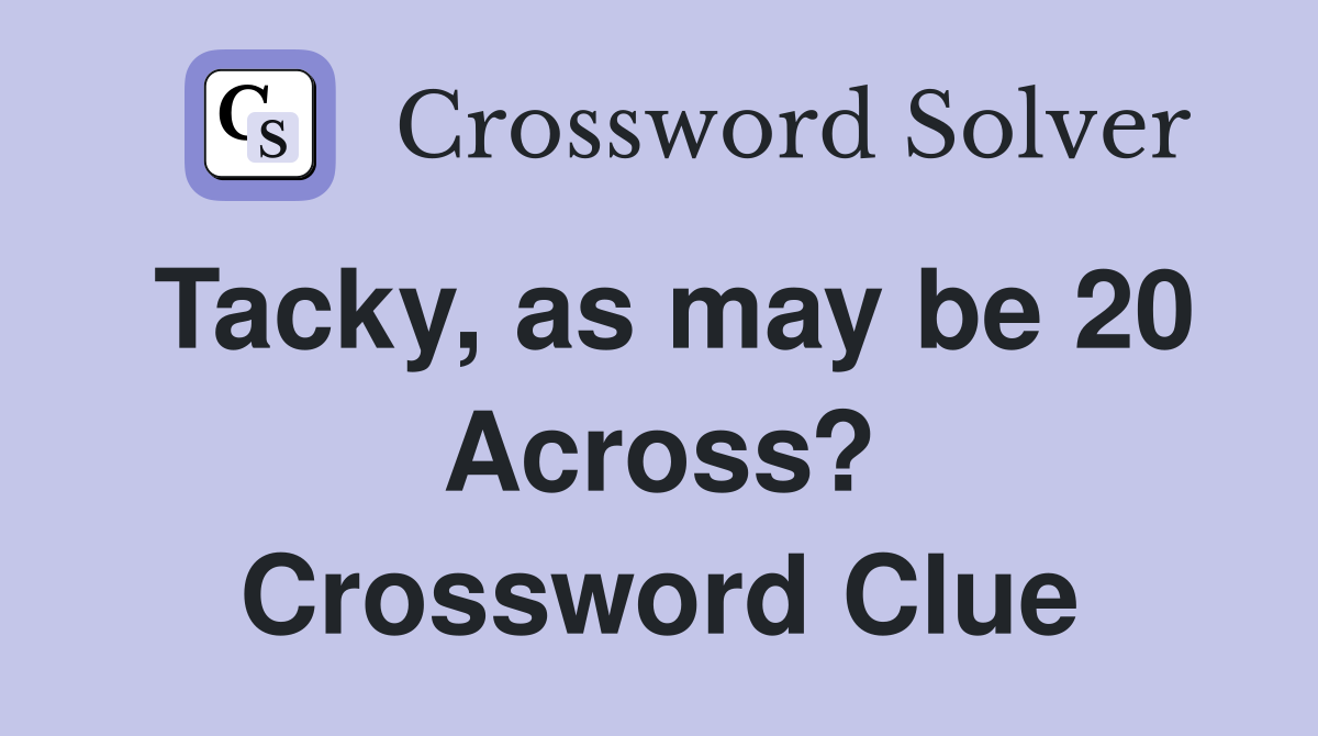Tacky as may be 20 Across? Crossword Clue Answers Crossword Solver