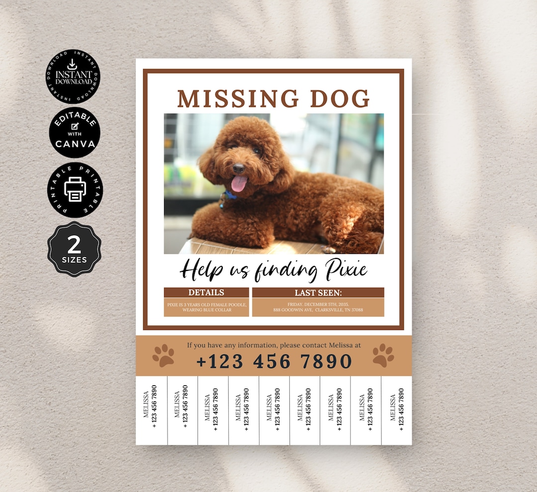 Missing Dog Poster Template Missing Dog Flyer Editable Etsy