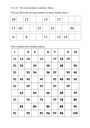 Missing Numbers Worksheet 1 100 Paper Trail Design