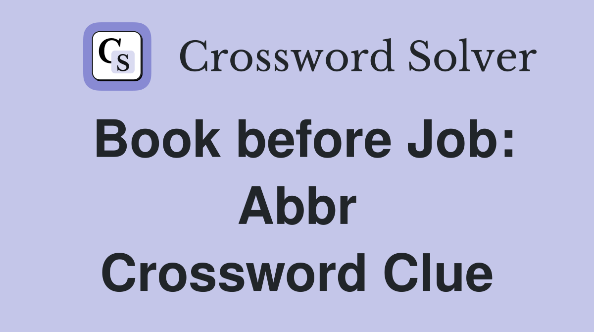 Book before Job: Abbr Crossword Clue Answers Crossword Solver