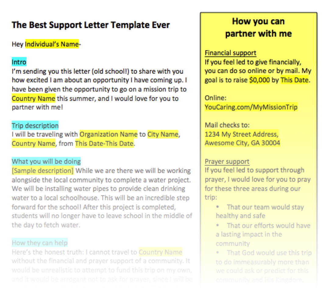 Printable Support Letter Template For Missions Trip