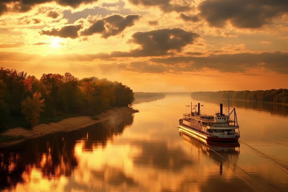 Mississippi River watercraft landscape outdoors Free Photo rawpixel