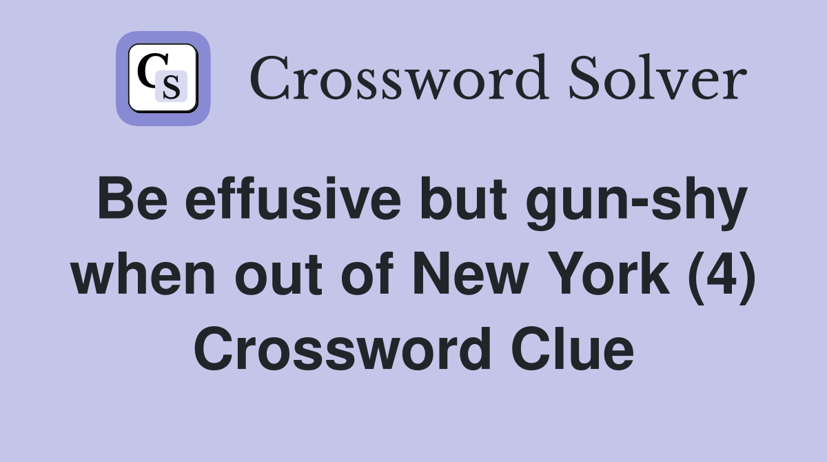 Be effusive but gun shy when out of New York (4) Crossword Clue