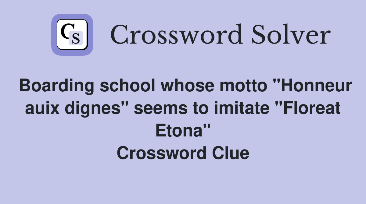 Boarding school whose motto quot Honneur auix dignes quot seems to imitate