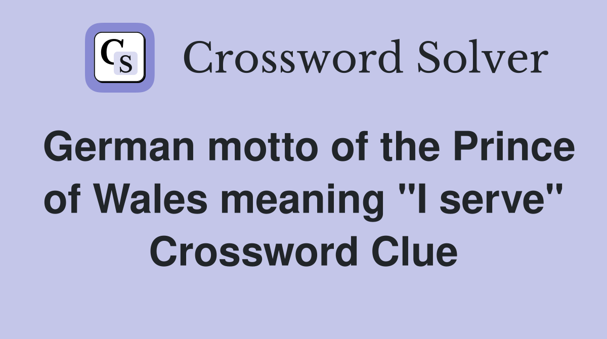 German motto of the Prince of Wales meaning quot I serve quot Crossword Clue