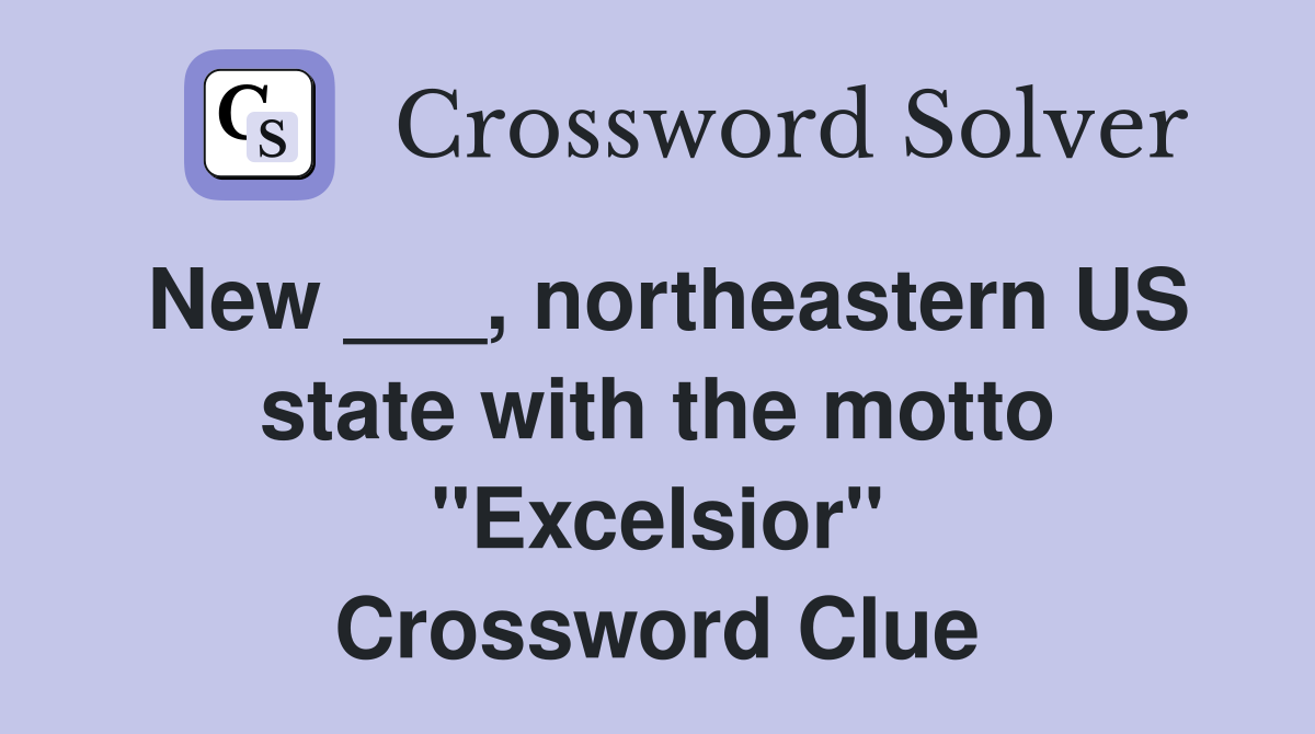 New northeastern US state with the motto quot Excelsior quot Crossword