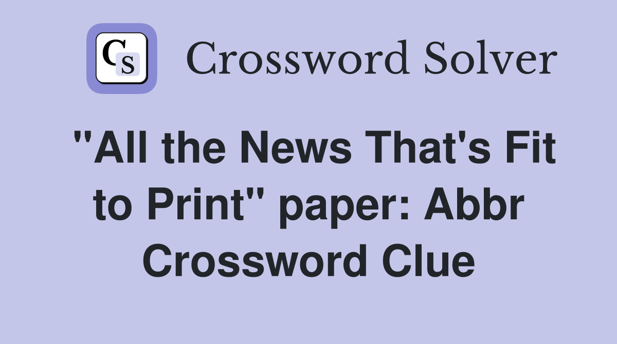 quot All the News That #39 s Fit to Print quot paper: Abbr Crossword Clue