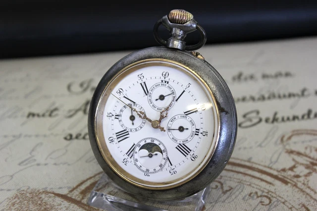 ANTIKE GOLIATH KALENDER Taschenuhr mit Mondphase pocket watch calendar