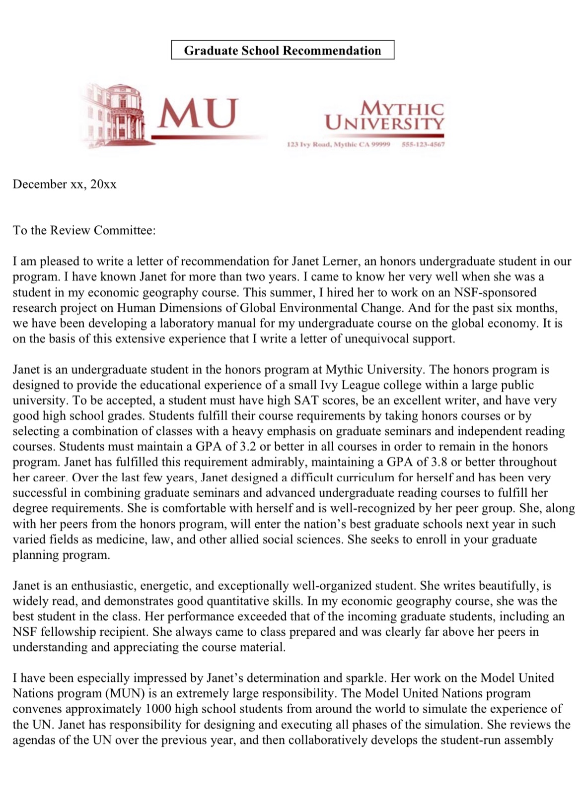 College Recommendation Letter