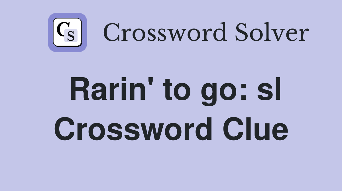 Rarin #39 to go: sl Crossword Clue Answers Crossword Solver