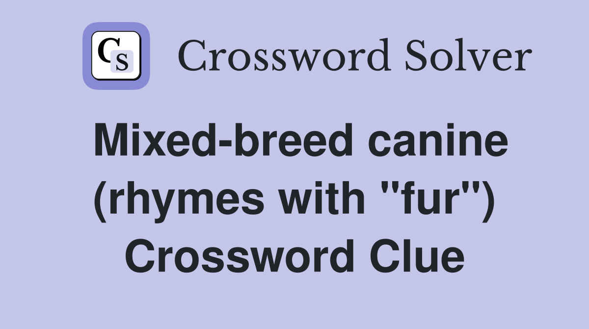 Mixed breed canine (rhymes with quot fur quot ) Crossword Clue Answers