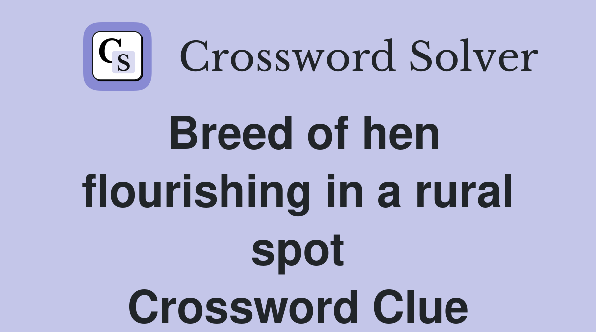Breed of hen flourishing in a rural spot Crossword Clue Answers
