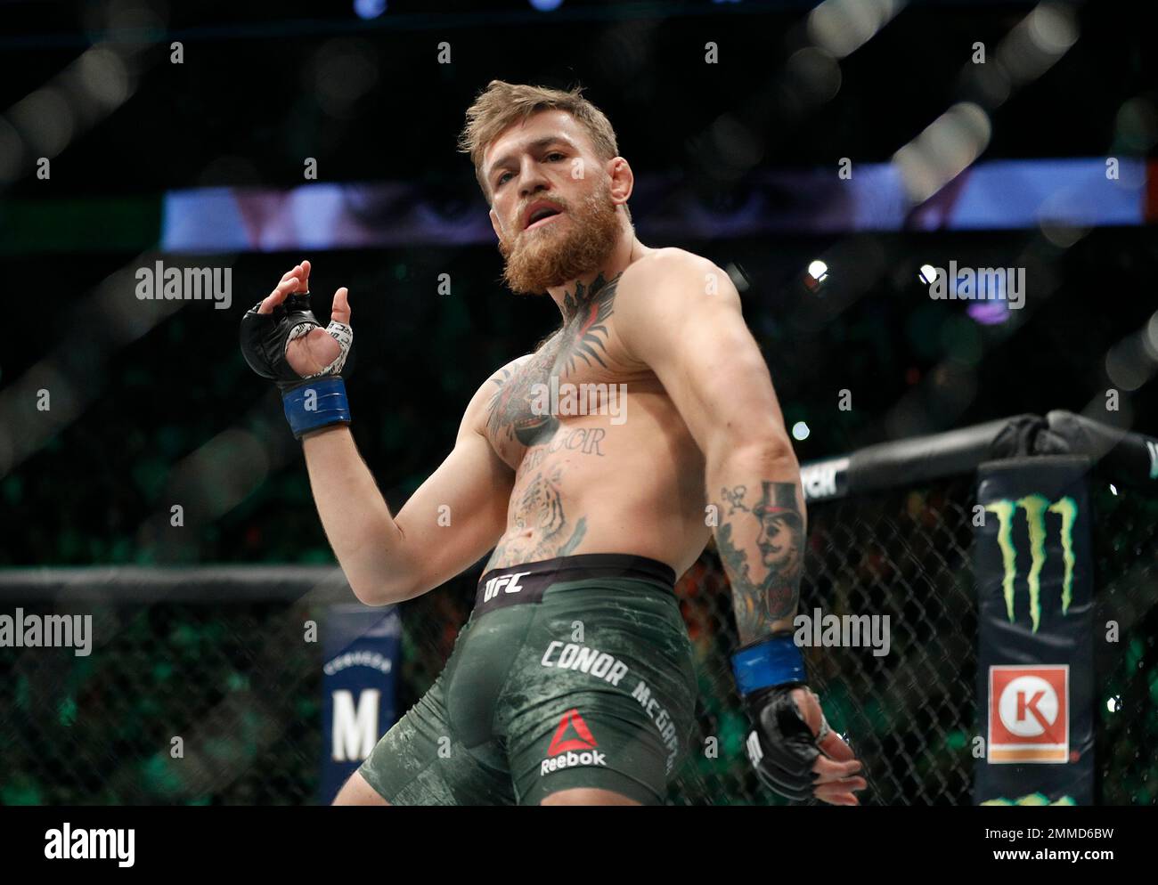 Conor McGregor walks in the cage before fighting Khabib Nurmagomedov in