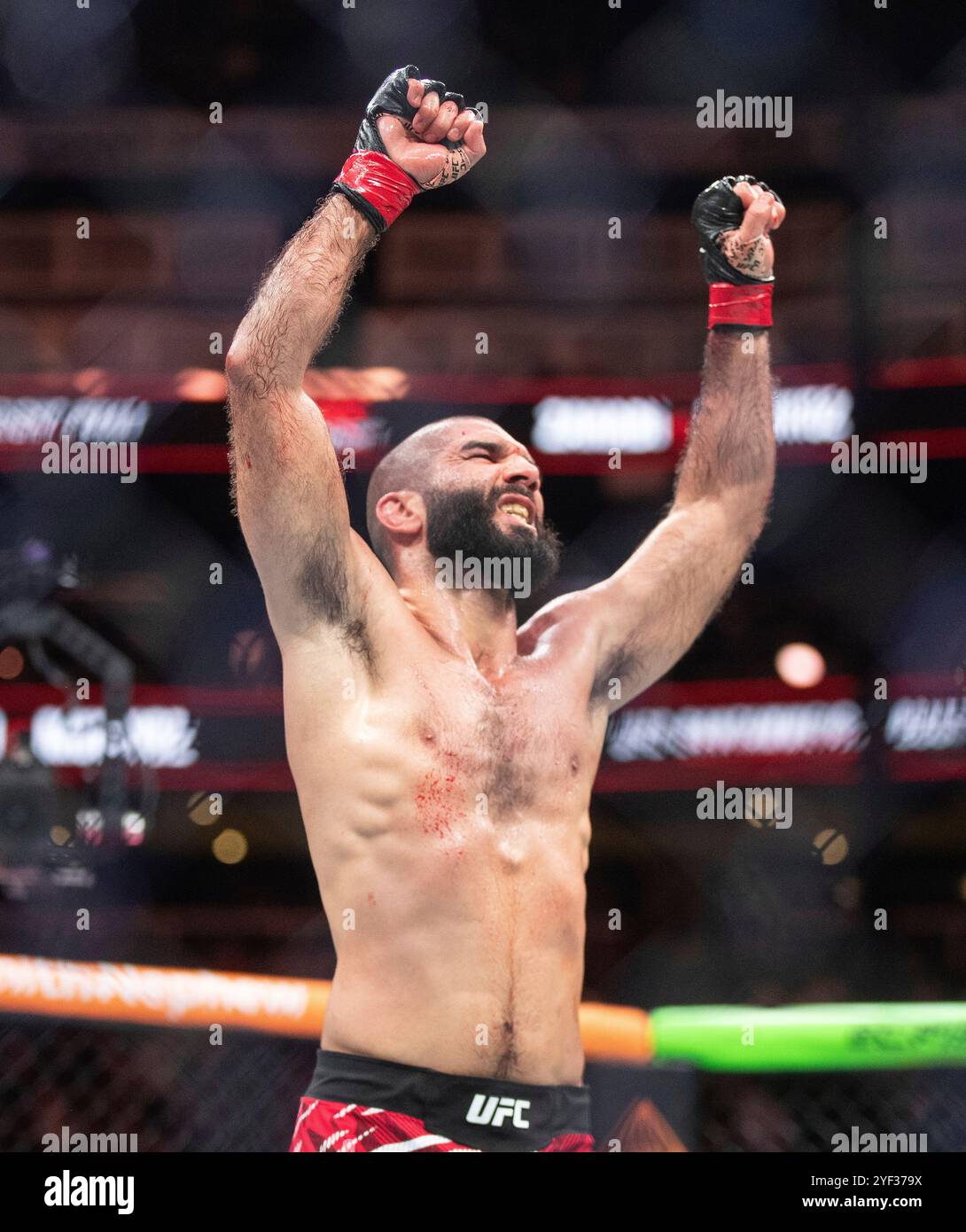 Aiemann Zahabi celebrates after his win over Pedro Munhoz in a