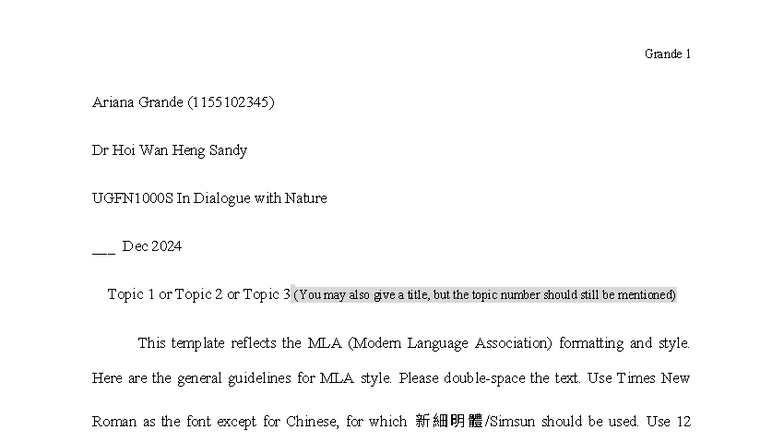 UGFN 241110 Term Paper Template: MLA Formatting Guidelines Studocu