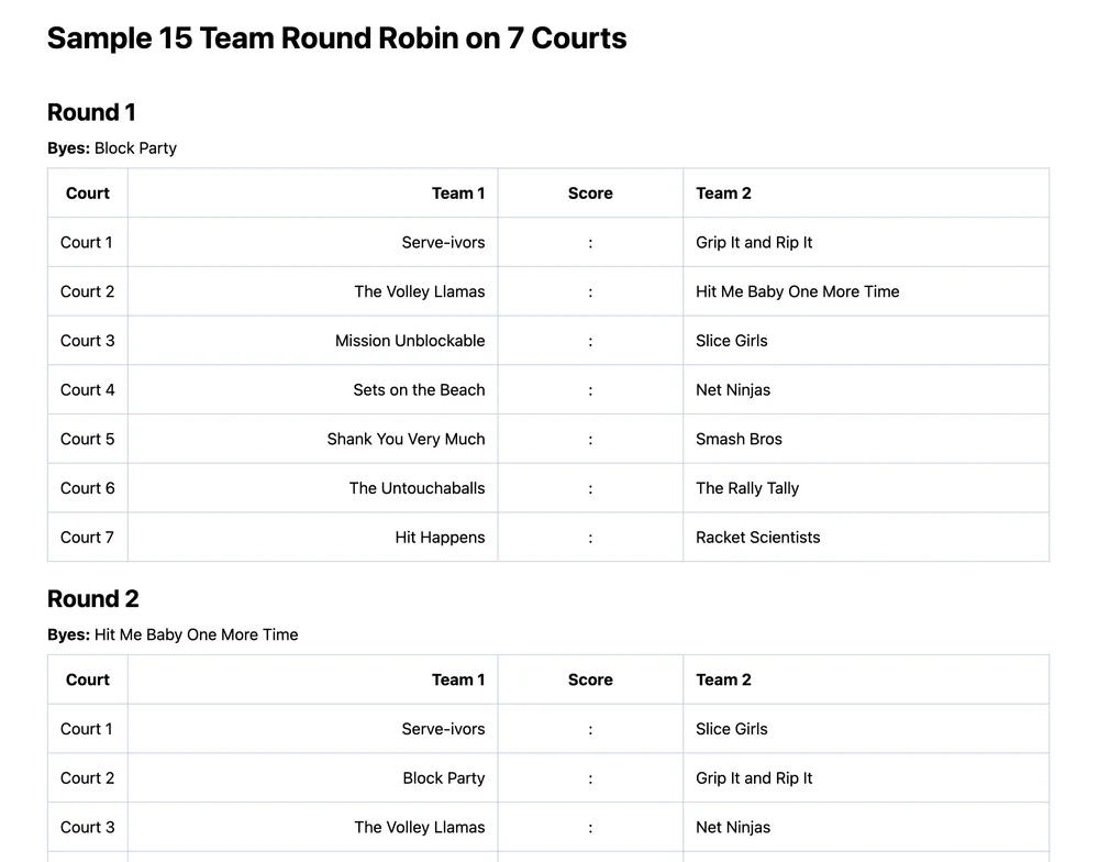 15 Team Round Robin Generator Online Printable PDF/CSV