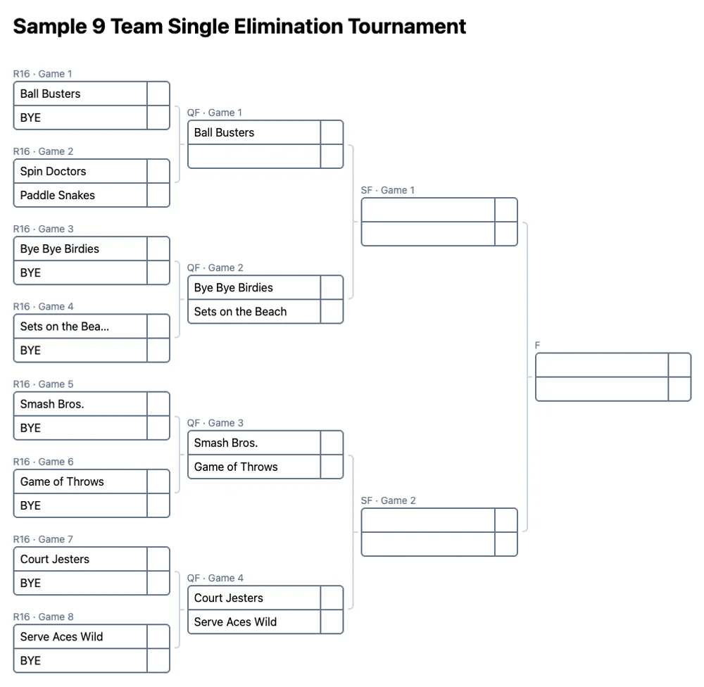 9 Team Single Elimination Bracket Generator Online Printable PDF/CSV
