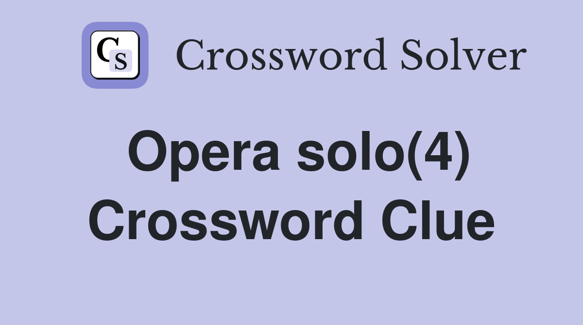 Opera solo(4) Crossword Clue Answers Crossword Solver