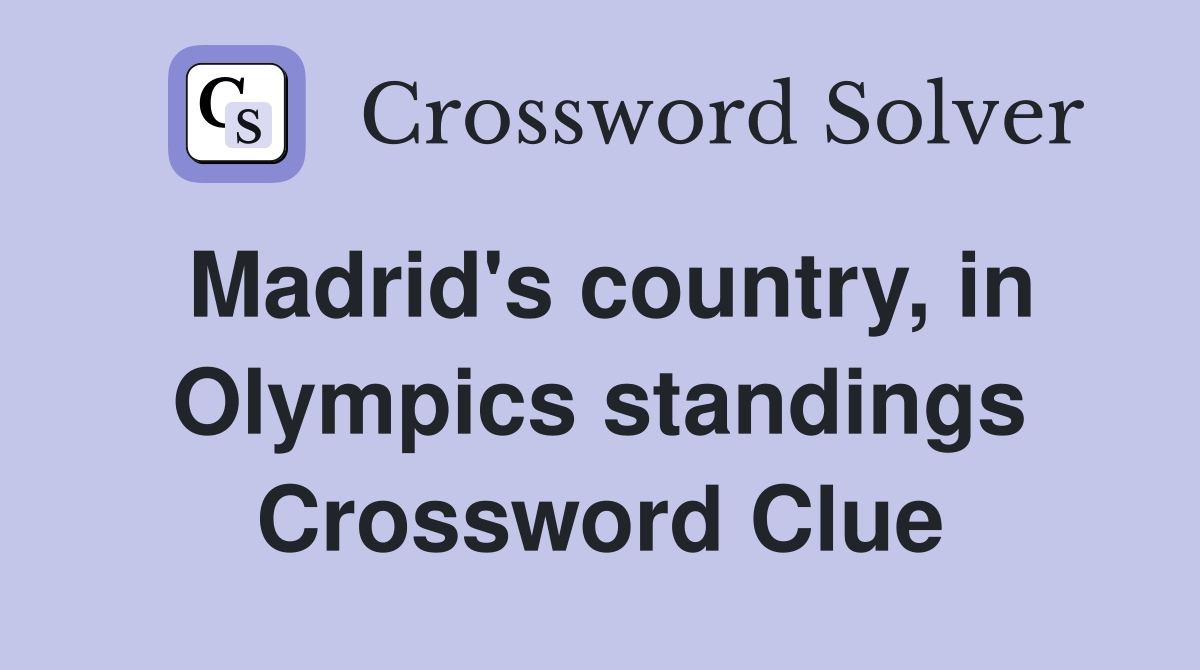 Madrid #39 s country in Olympics standings Crossword Clue Answers