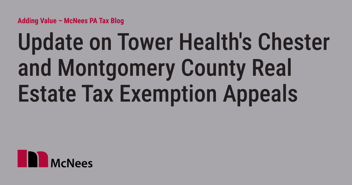 Update on Tower Health #39 s Chester and Montgomery County Real Estate Tax