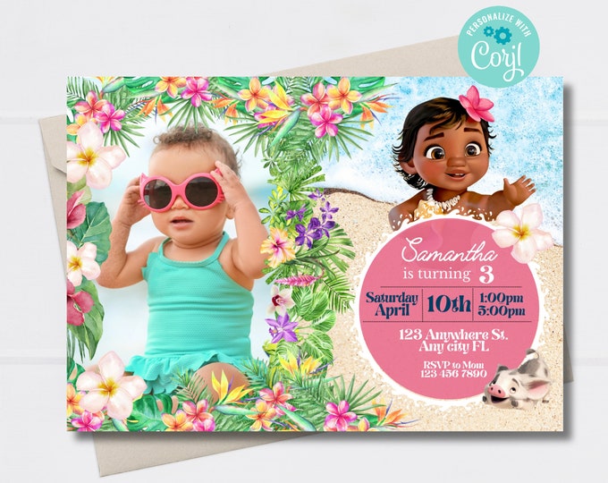 Baby moana birthday invitation editable digital hawaiian moana birthday
