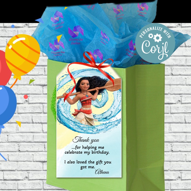 Moana Thank you tags Moana Thank you gifts Template Editable