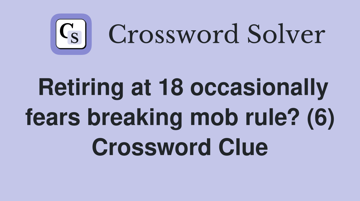 Retiring at 18 occasionally fears breaking mob rule? (6) Crossword