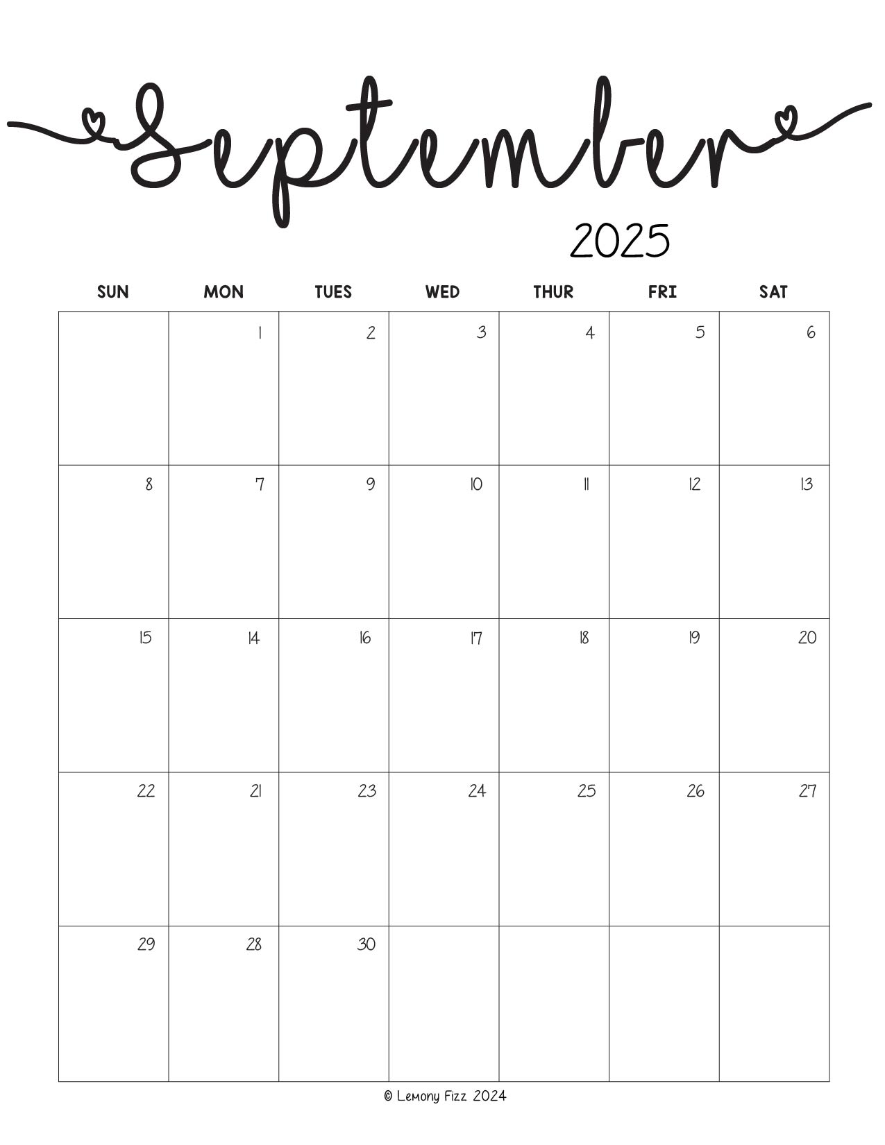 September 2025 Monthly Printable Calendar