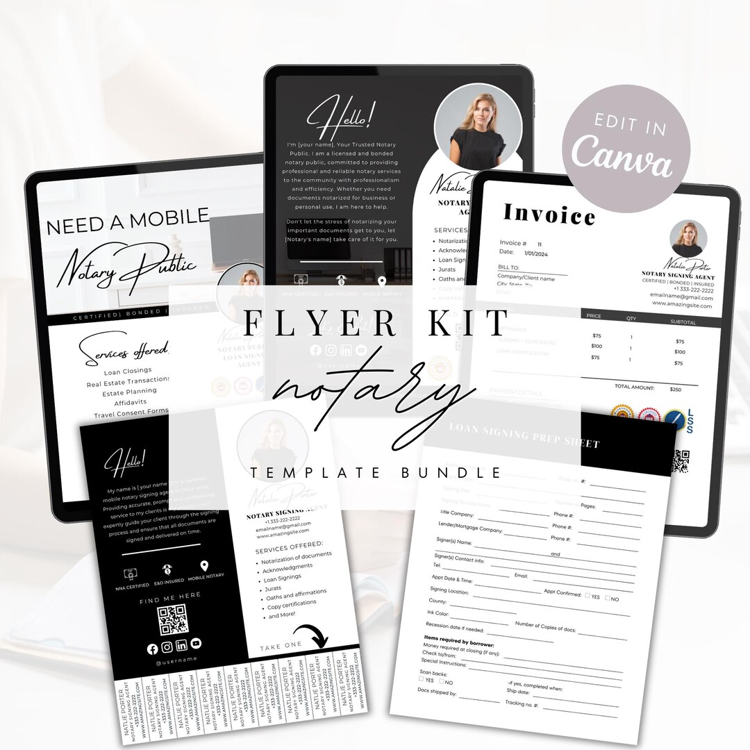 Notary Flyer Template Kit Editable Canva Flyer Set for Notaries Loan