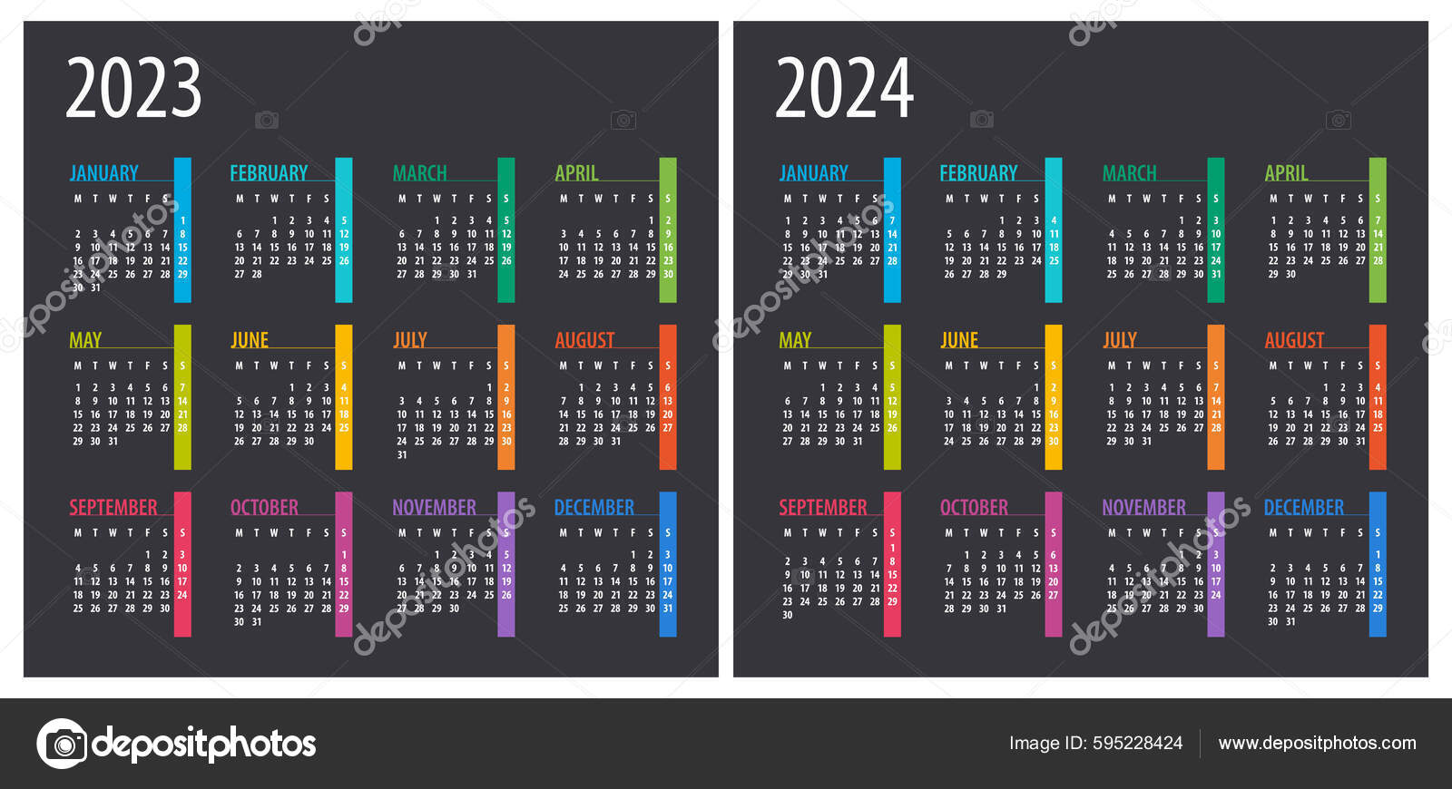 2023 2024 Calendar Illustration Template Mock Stock Vector by
