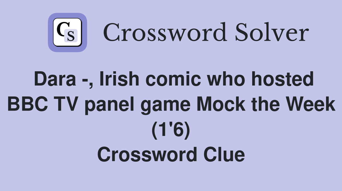 Dara Irish comic who hosted BBC TV panel game Mock the Week (1 #39 6