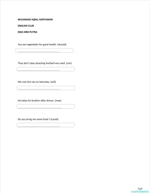 Modal Verb: interactive worksheets and online exercises TopWorksheets