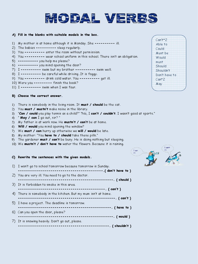 Modal Verbs Worksheets Practicing Modal Verbs Worksheet