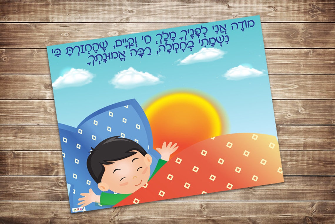 Modeh Ani Blessing Printable Poster for a Boy~jewish Prayer~jewish