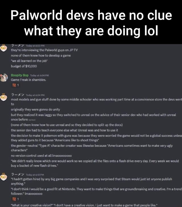 Palworld devs have no clue what they are doing lol F AY Today at Pm re