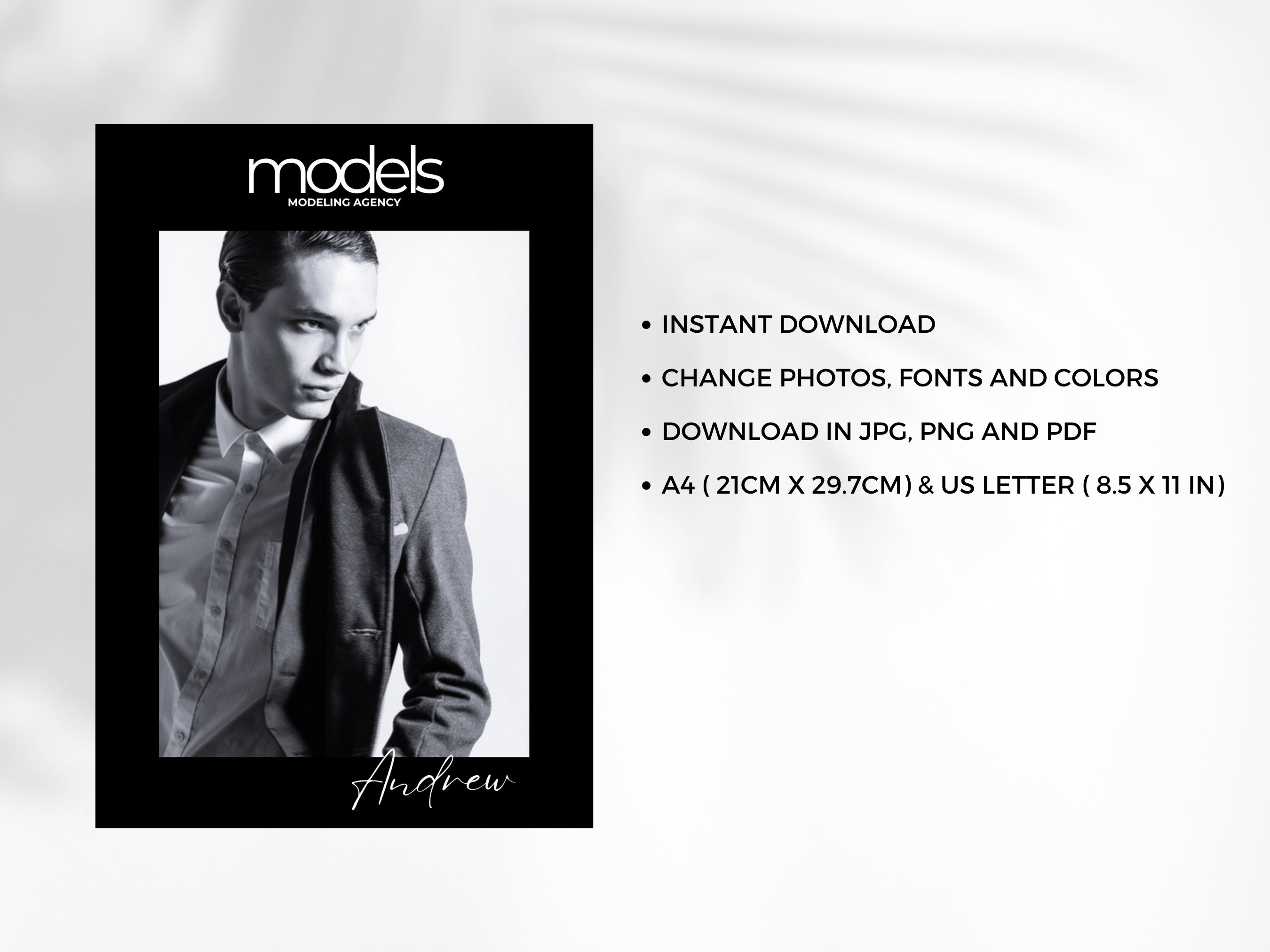 Model Comp Card Editable Fashion Model Zed Card Model Portfolio