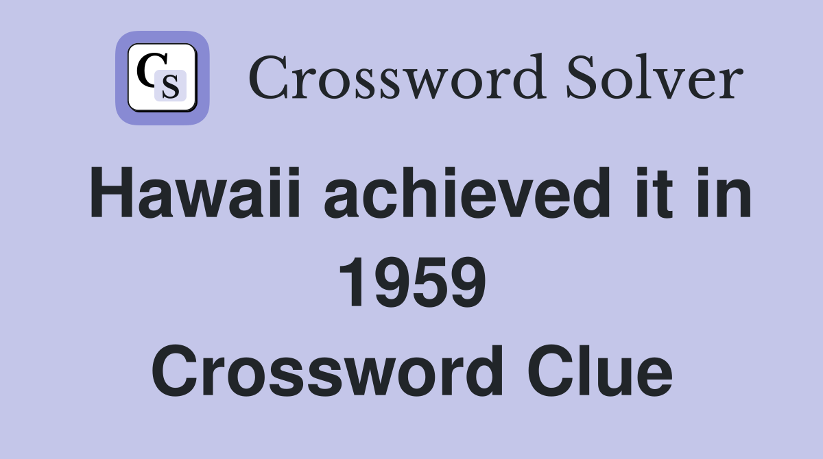 Hawaii achieved it in 1959 Crossword Clue Answers Crossword Solver