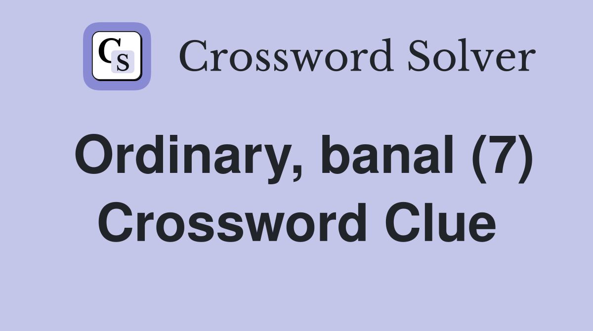 Ordinary banal (7) Crossword Clue Answers Crossword Solver