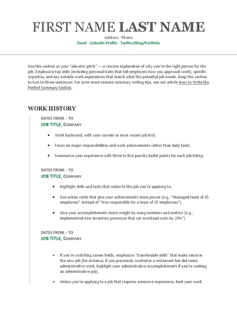 Chronological Resume Template and Example :: Chronological Resume