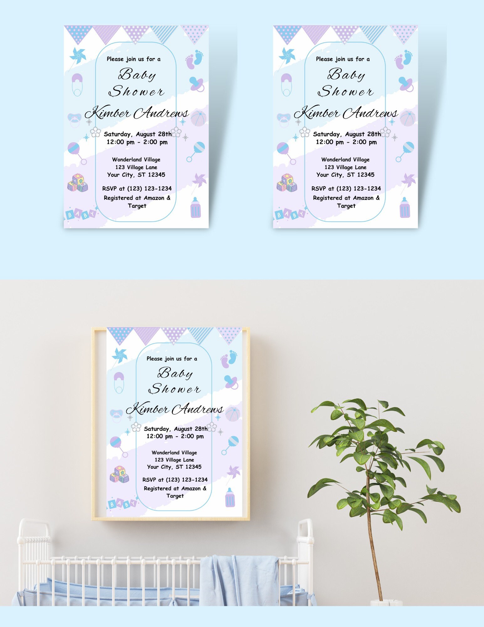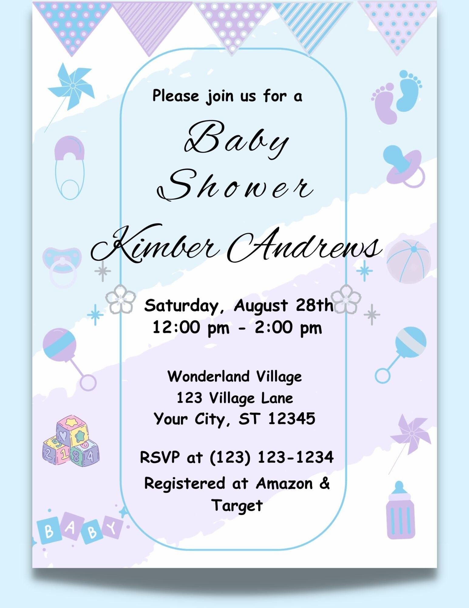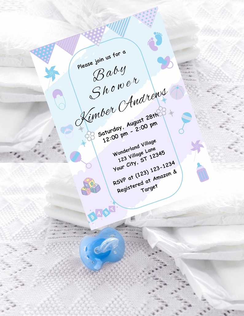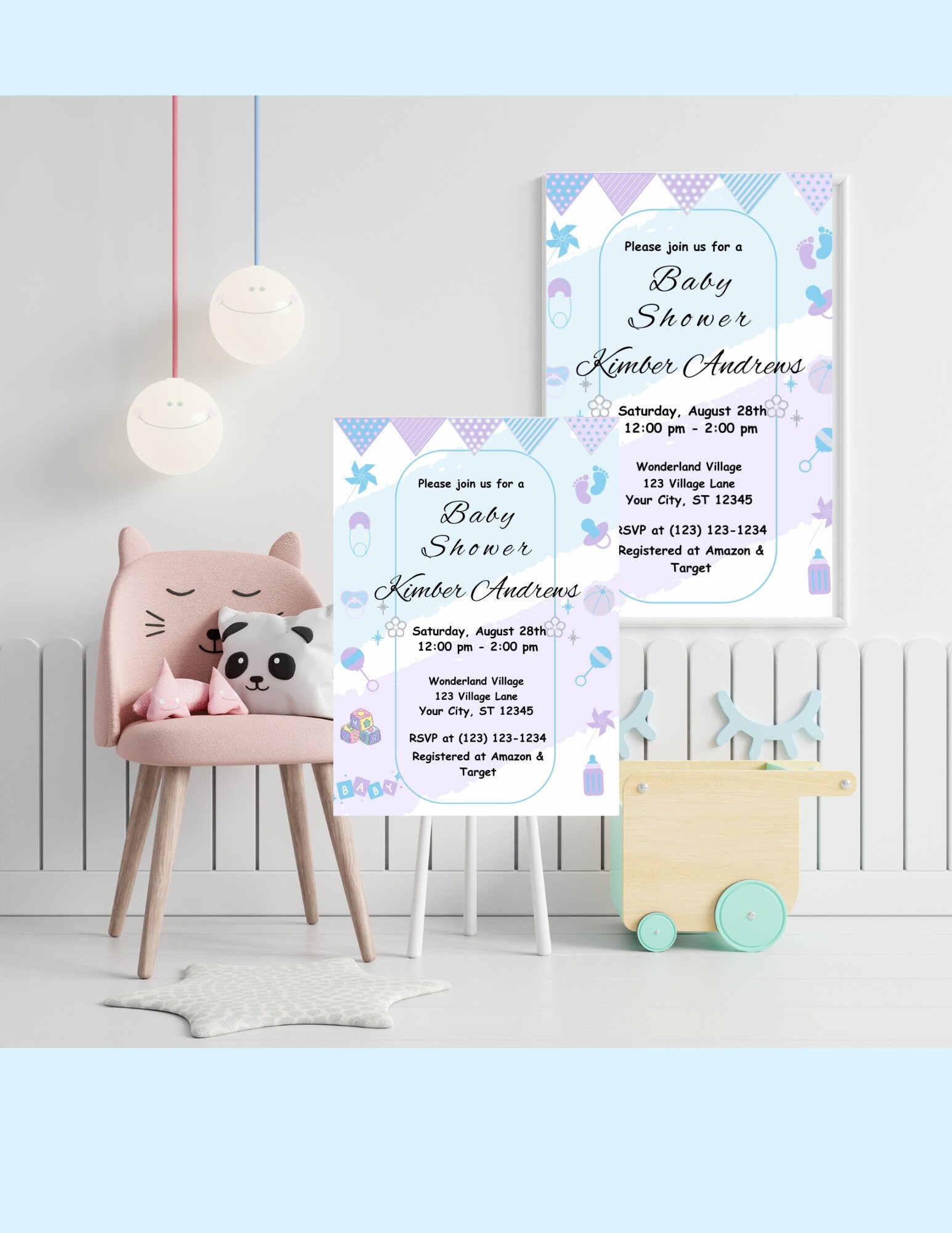 Baby Shower Modern Invitation Template Modern Blue Lavender Editable